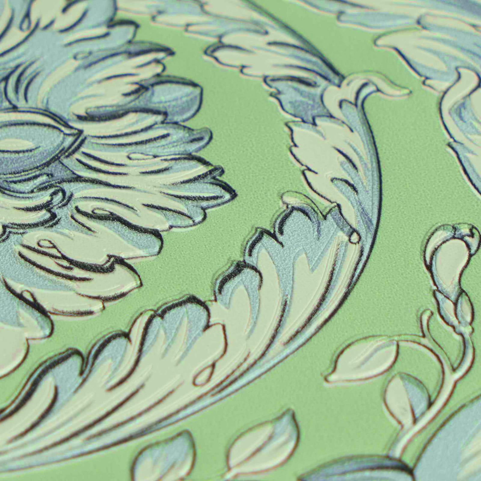 This elegant wallpaper from AS Creation's sixth wallpaper collection in collaboration with Versace opens a new chapter in luxurious wall decoration. Inspired by the DNA of the Versace fashion house, it is interpreted in a contemporary design language. The non-woven wallpaper 79135-1 features a floral Baroque motif with flowers and leaves in shades of green, blue, and white. Discover the complete collection in our shop and bring a touch of luxury into your home.