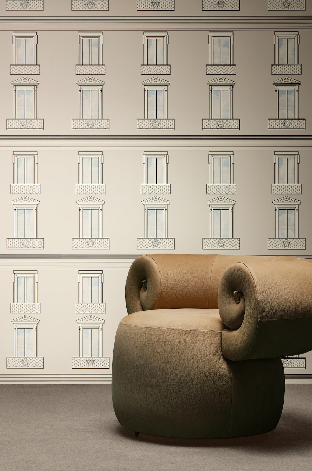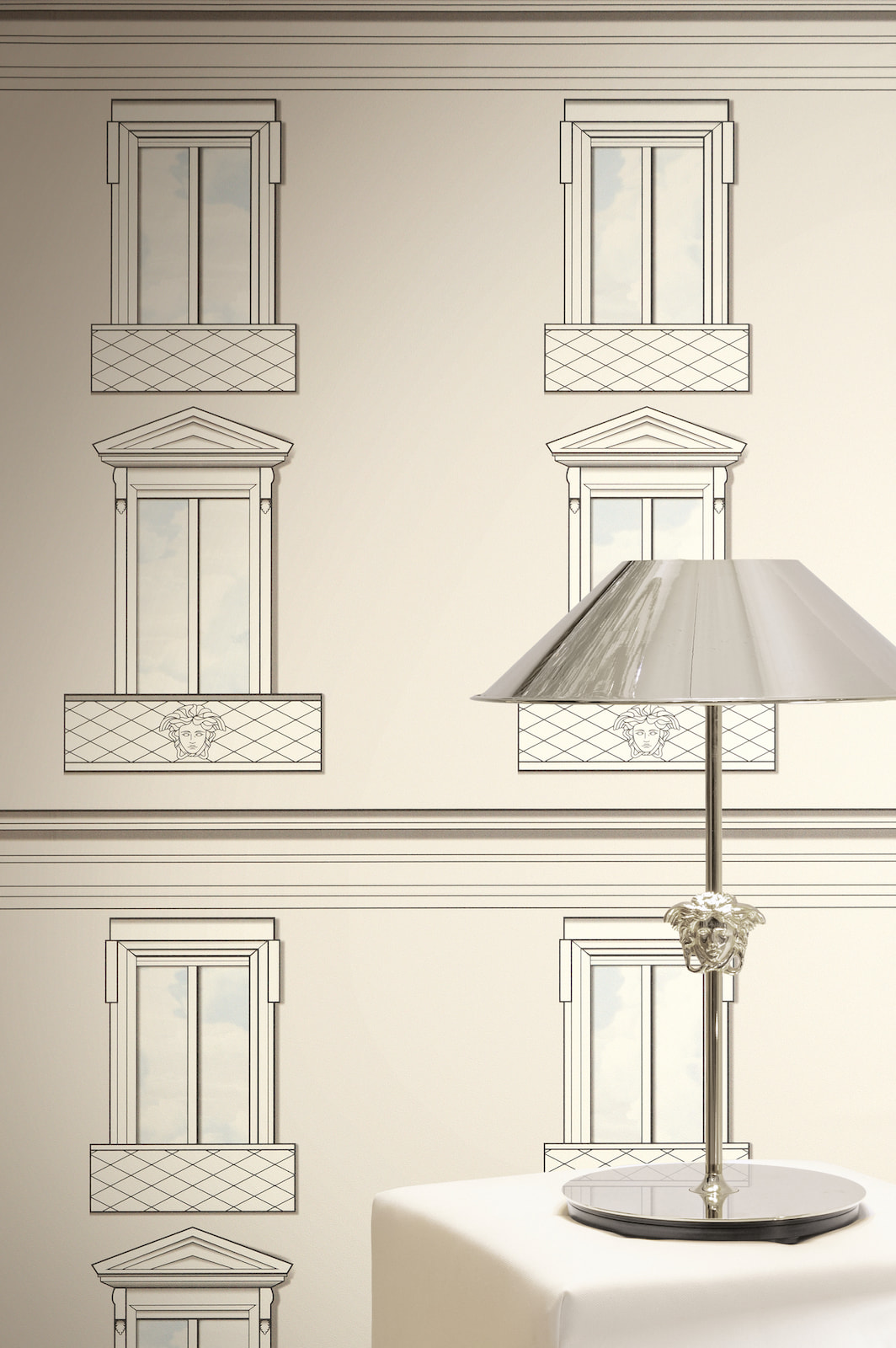 This exquisite wallpaper, from AS Creation's sixth wallpaper collection in collaboration with Versace, opens a new chapter in luxurious wall coverings. Inspired by the DNA of the Versace fashion house, it is interpreted in a contemporary design language. The non-woven wallpaper 79132-2 depicts a house facade with windows in a 3D effect, rendered in beige and cream tones. Discover the complete collection in our shop and bring a touch of luxury into your home.