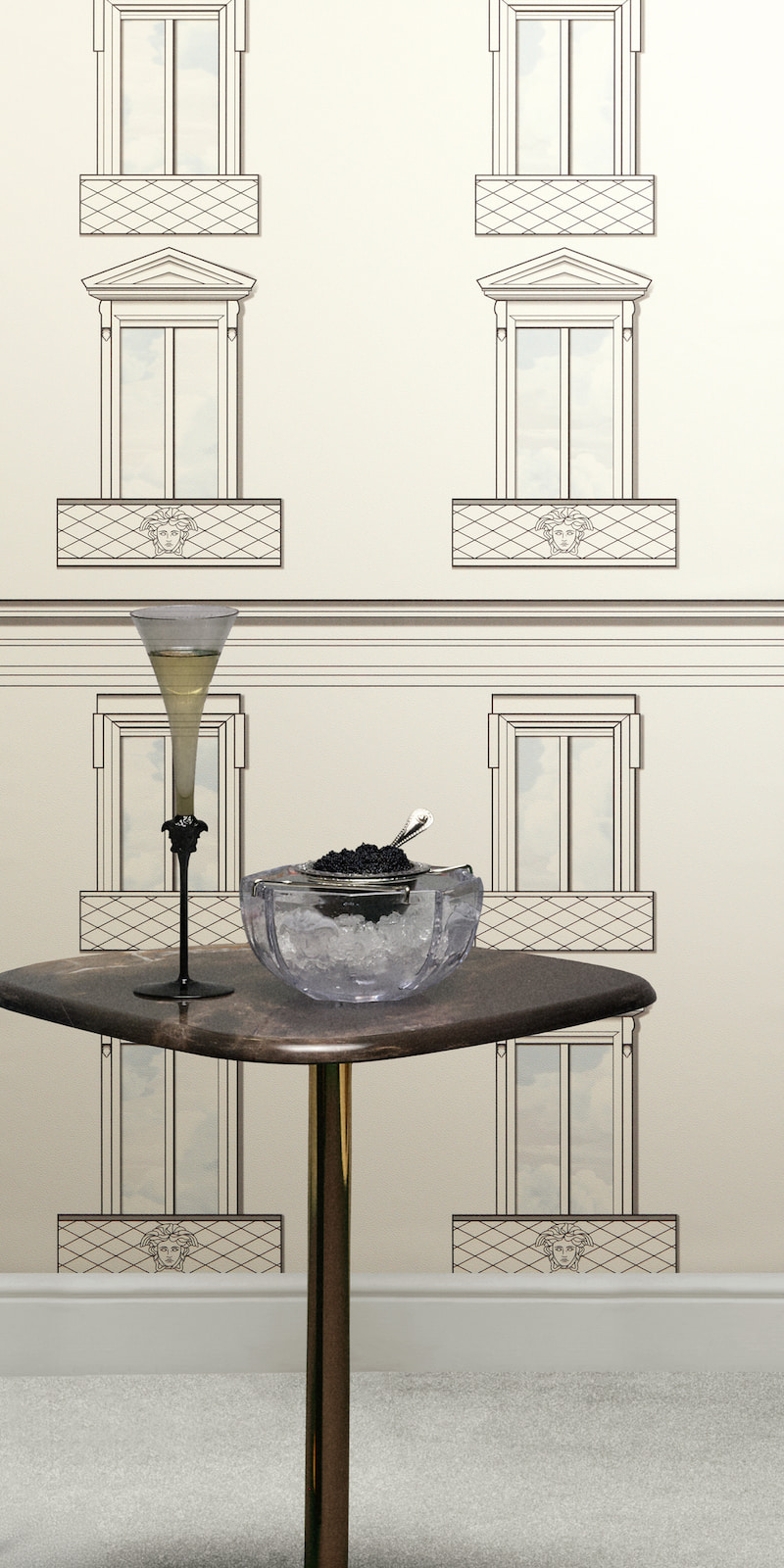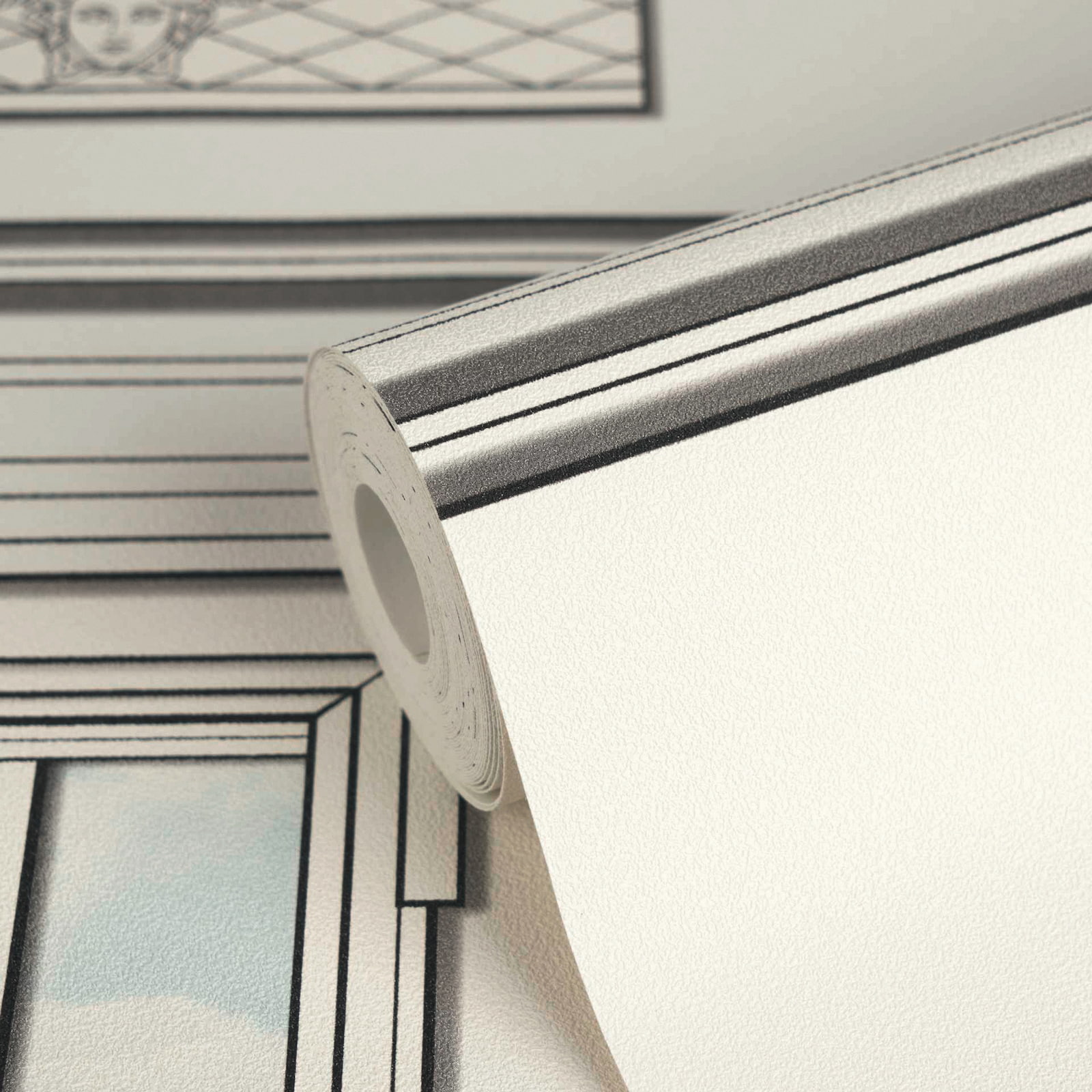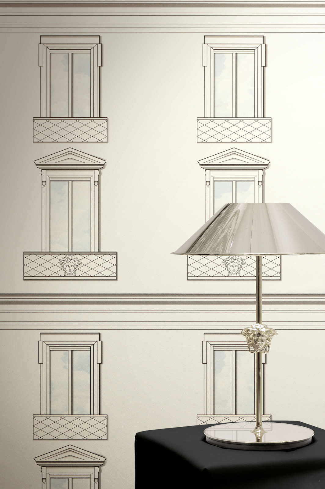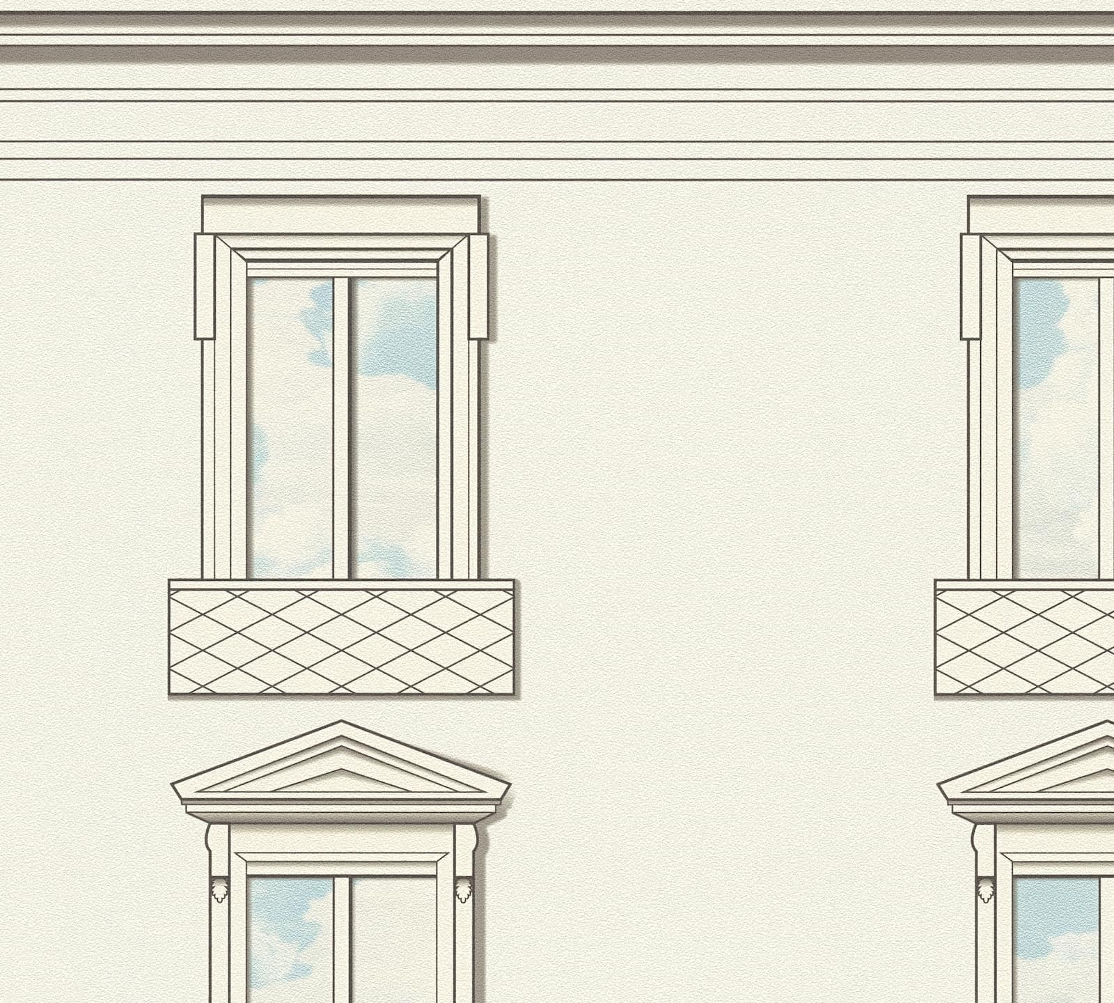 This exquisite wallpaper, from AS Creation's sixth wallpaper collection in collaboration with Versace, opens a new chapter in luxurious wall coverings. Inspired by the DNA of the Versace fashion house, it is interpreted in a contemporary design language. The non-woven wallpaper 79132-3 depicts a house facade with windows in a 3D effect, rendered in cream and gray tones. Discover the complete collection in our shop and bring a touch of luxury into your home.