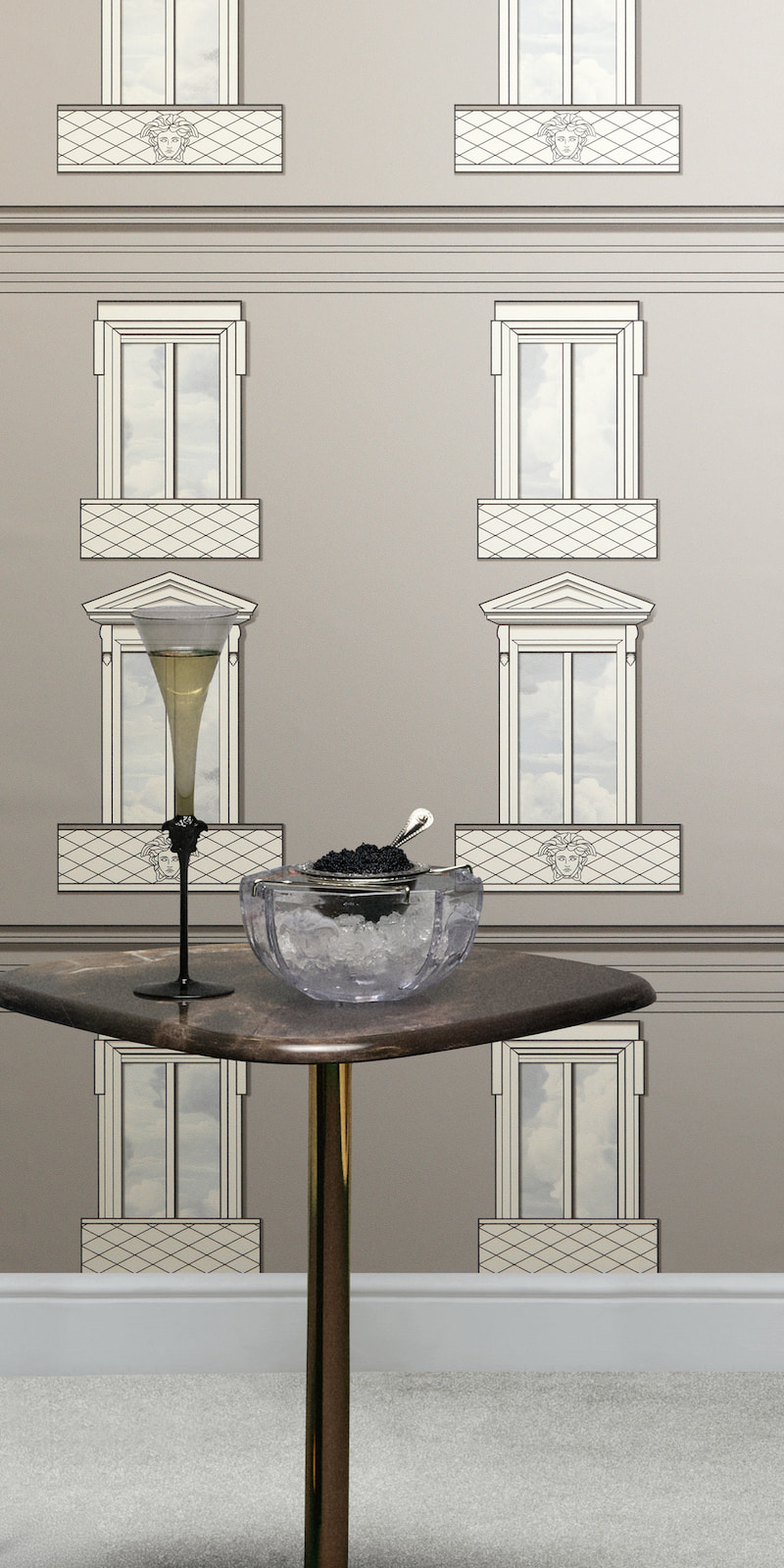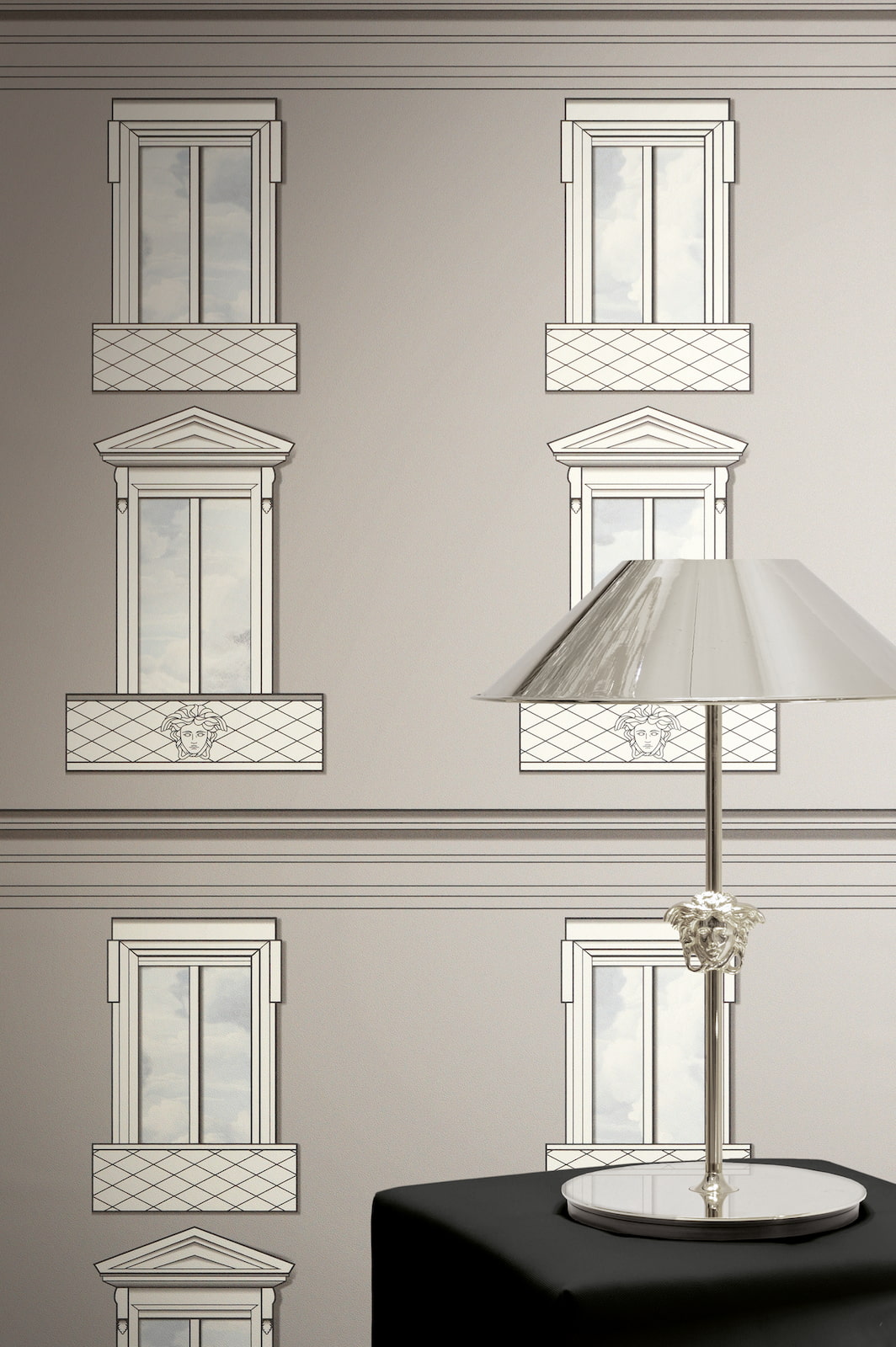 This exquisite wallpaper, from AS Creation's sixth wallpaper collection in collaboration with Versace, opens a new chapter in luxurious wall coverings. Inspired by the DNA of the Versace fashion house, it is interpreted in a contemporary design language. The non-woven wallpaper 79132-1 depicts a house facade with windows in a 3D effect, rendered in shades of gray and cream. Discover the complete collection in our shop and bring a touch of luxury into your home.