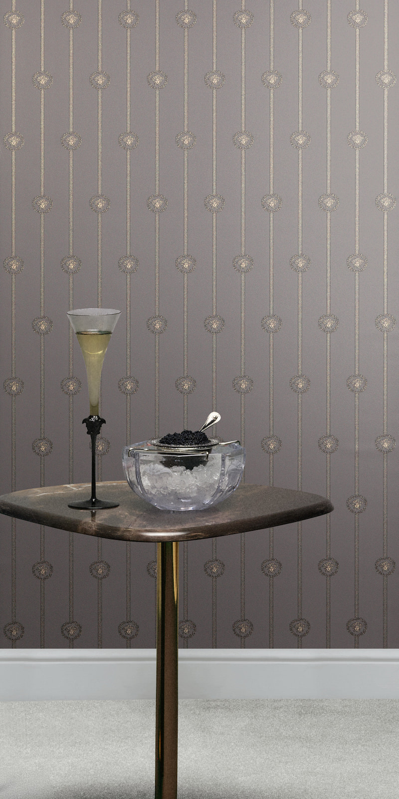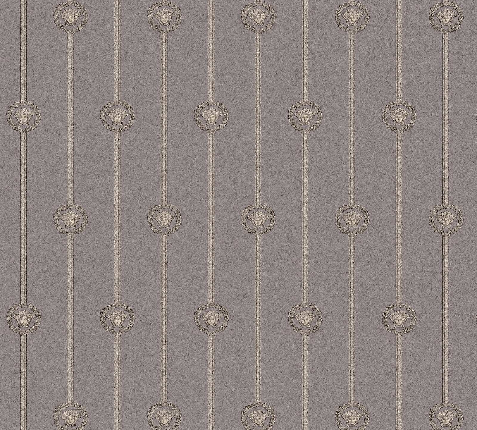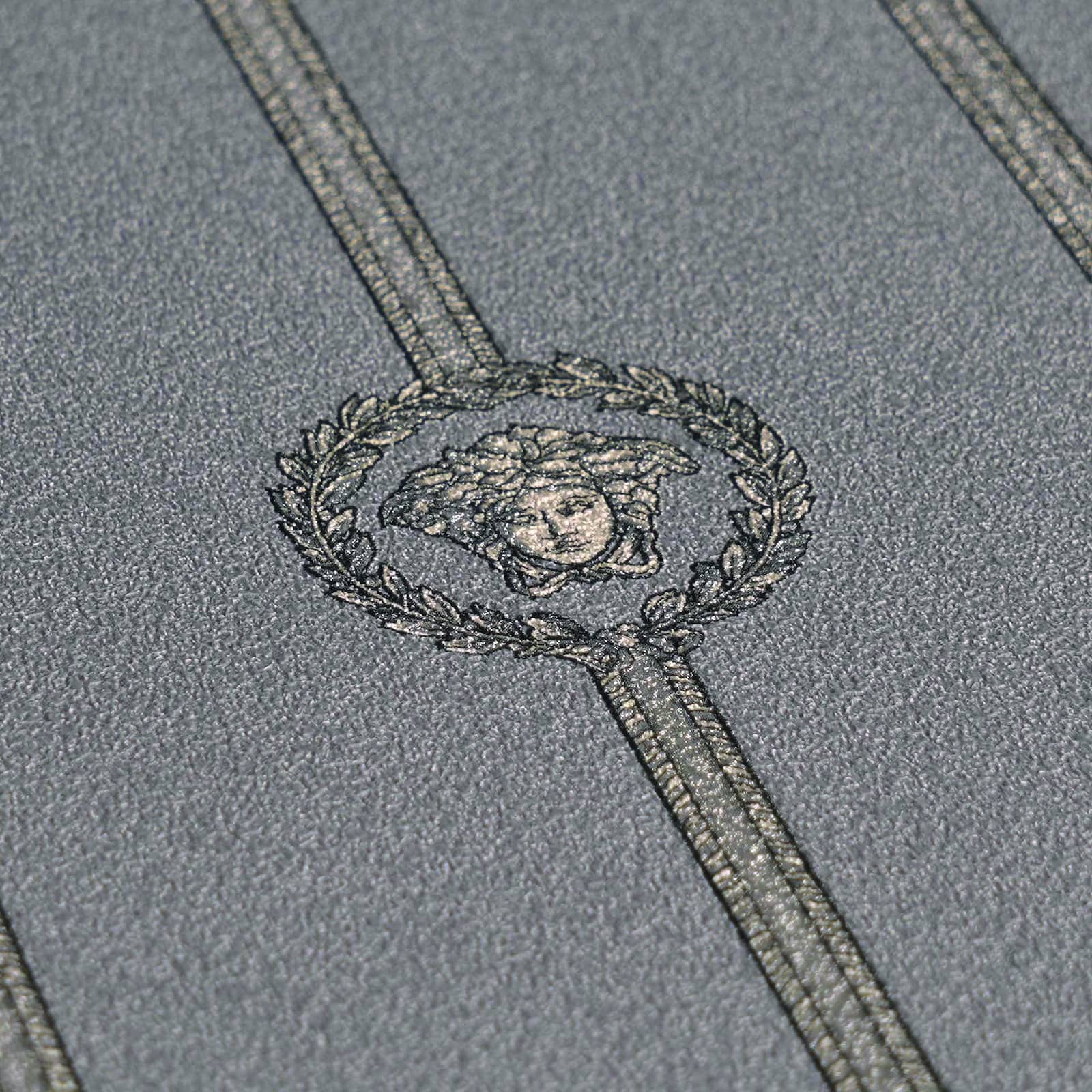 This elegant wallpaper from AS Creation's sixth wallpaper collection in collaboration with Versace opens a new chapter in luxurious wall coverings. Inspired by the DNA of the Versace fashion house, it is interpreted in a contemporary design language. The non-woven wallpaper 79173-4 features a striped motif with the Medusa emblem in shades of gray with a metallic gold effect. Discover the complete collection in our shop and bring a touch of luxury into your home.